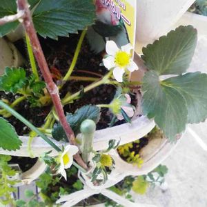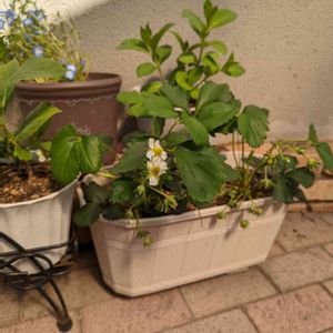一週間でまた成長しました🍓♡ 欲張って花数を減らしてないため 食べれるイチゴになるかどうか 鉢もとても小さいし😰鉢増ししたいけど植替えは怖いので、このまま成長を見届けます🍓