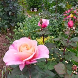 ポツリポツリ咲きだしたわが家のバラ 今はやりの ニュアンスカラー なのかな?と思い、どんな色か調べたけど、よくわかりませんでした💦 ピンク系とオレンジ系の花びらが同居してます。 🏷️「金曜日の蕾たち」参加させてください。 みどりのまとめ を昨日アップしました。