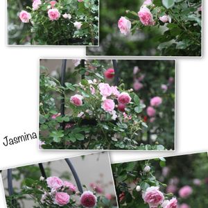 今回から「ジャスミーナ」の紹介に致します😊🎶✨ 房咲きで垂れ下がる姿は神です!満開時はこれぞバラの香りと思わせる香りが一面に漂います🌹 2回目になります。一緒に写ってる濃いピンクのバラはキングローズです!