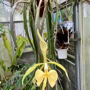 田口洋蘭園さんの温室で すんごい香りを放っていたお花❣️ 名前聞いたけど、忘れた😅 鉢の底から花芽がニョキッとぶら下がり咲いてました🤣