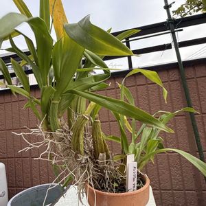 デンドロビュウム リンドレイ Den.lindleyi(aggregatum) このデンドロビュウムは小型で場所を取らないので10鉢以上持っていますが、今年は6月に半分以上の鉢が同時に咲きました。 原種洋蘭あるあるで1週間位で花が終わってしまうのが残念ですね。