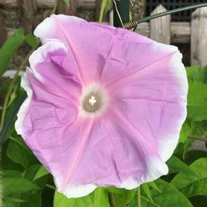朝顔が咲いたよ〜🙋 大輪ですが枠が邪魔をして綺麗に咲けないよ 次はもう少し上の方で咲いてね🌸
