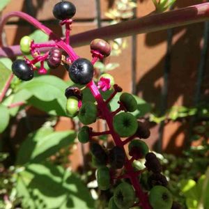 フェンスから通り側に出たブルーベリー👀 庭から上手く逃げたつもりが、 これじゃ逆に目立ってる(⌒-⌒; ) はみ出し者さん、ちゃ〜んと食べてあげるからね〜(๑˃̵ᴗ˂̵)