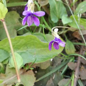 見つけましたよ すみれさん 名前までは分かりませんが可愛いです でも、この子は歩道と道路の間に咲いてました 車が来ない時を狙ってパシャリ😁 あぶない人になりつつあるかも💦