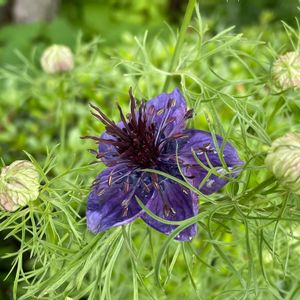 ニゲラ ミッドナイト 咲きました💙 暗めのブルーがシックで素敵😍