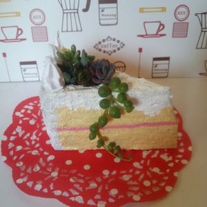 多肉のショートケーキができました。 器のケーキから作ってるので時間がかかってます。 試作品第一号! 改良しないとね。