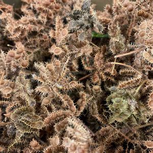 なんかゴツゴツしたこれは何? よく見たらオジギソウの種ー😵‼︎ 多年草でも冬に消えるそうです。 タネを採取しておかないと…(〃艸〃)ムフッ