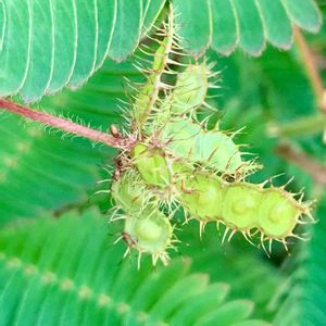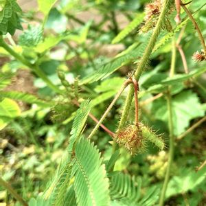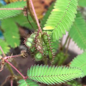 葉っぱを触ると閉じてしまう おじぎ草 含羞草 オジギソウ 種子ができていました ぷっくり膨らんで!