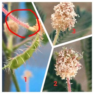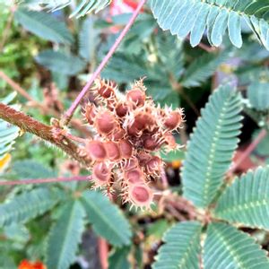 🌸オジギソウの蕾と花と種🌸 ぜーんぶ一緒に見られます😊 種は茶色になって割れてこぼれ落ちます❣️ 落ちる前に採って来春植えましょ😊