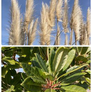 年末年始ずっといい天気が続いています 今日も青空にパンパスグラスが綺麗です 今日のお花 今日もちょっと違う ヒメユズリハ😅