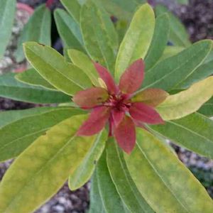 ヒメユズリハの赤い新芽