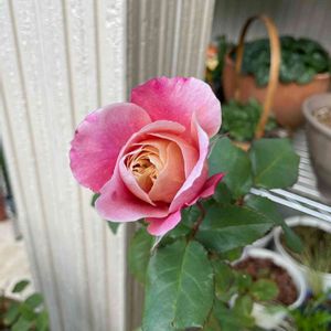 最後の薔薇🌹マチルダ 鉢薔薇の冬剪定を済ませました。最後に残ったマチルダさん💕 あまりの寒さに寄り添って咲いています(๑>◡<๑)咲いてくれてありがとう❣️またね🤗