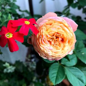 ベビーロマンティカさん🌹🌿✨ 今朝は赤い小花さんとの競演です😌 花びらちょっとピンクです💓