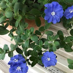 おはようございます☀ 今日は、朝虹🌈がでていました。 先日ガクガクブルブル😳で切り戻したアメリカンブルー🌼 ぐんぐん伸びてお花をたくさんつけています。 よかったー。😙 水にさした方も根っこが出てまいりたした。挿木の方がいいのかなーと思いつつこのまま見守りたいと思います。😀