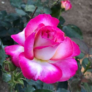 春にうちに来た頃のジエンシェントマリナーです。 大事に大事に育てていますが、来て二ヶ月は、シュートも出ず葉も落とさず沈黙の娘でした。 やっと8月頃、小さな小さなシュートが出て、それはそれは喜びました。 順調にシュートも伸びて元気いっぱいになり、秋は🤗と期待を膨らませつつ実家に持って行ったら、なんとヨトウムシ野郎とハッキリムシ野郎にやられてしまい、葉っぱが…😭 またまたすこーしづつ、葉っぱは増やしておりますが、四季咲きなのに一度もお花にあえませぬ。😢 肥料もちゃんとあげているのに なぜだろー。🤔 会える日を信じて、今日も「趣味の園芸」見るからねー👀マリーナちゃん😢