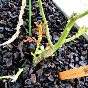 ローズポンパドゥールに新しい新芽が~!しかも伸びてる〜!嬉しい♡♡ 岐阜県は猛暑で薔薇が死にかけていたので先日まだ土を触る時期ではありませんがダメ元で牛肥と粉骨?と油粕を少し混ぜ、2日置きに水を与えた所…まさかの奇跡です泣😭 しかも子供が入院してしまい、たまたま今日着替え取りに帰りがてら見たら新芽ちゃんだったので本当に嬉しくて嬉しくて泣 ただ時間の都合で消毒も出来なかったので帰ってくる頃にどうなってるかですが…