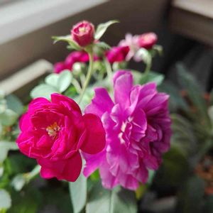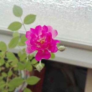 またまた、2個目ミニバラが咲き始めました😄 奥の蕾も乞うご期待!!