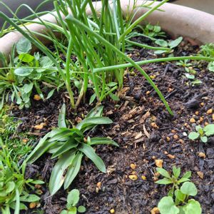 おはようございます チャイブの真ん中から咲いてたネジバナは葉っぱ🌿 来年増やしたいと思い、早めにチャイブの葉を切り太陽のひかりを浴びさせました 光合成ってやつ!? 種らしくなったら、指で しごき 種を落としてから、上に新しい土をかぶせました。 来年、増えて欲しいけど…… ダメモト デ ヤッテミタ😆