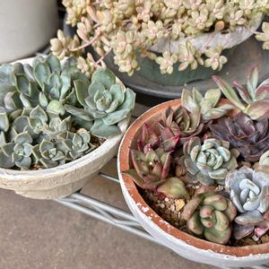 ①もう名前がわからなくなってとりあえず鉢に入れている多肉植物 パキフィツム〇〇美人とか見分けがつきません ②ラベルのコピー 今までお迎えした多肉植物のラベルをコピーしておきました こんなのあった?というものや 今も頑張ってるなぁ!というもの インスタゲリラ販売でスマホに張り付いて買ったなぁ!という熱い思い出等々… なるべく忘れないように