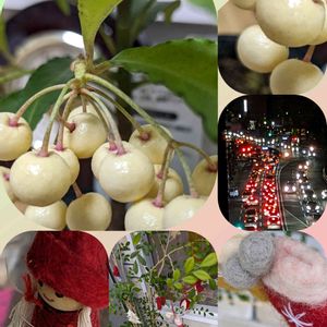 又明日ね〰️❤️ 明日も良い日が 来ますように🙌 今日も有り難う❤️ 迎春用 大実万両の白を買ってきました。 どの鉢に植えようかな…。 ケーキ屋さんのツリーは フエルト作りでした。 とても小さな手袋もホカホカでした。🧶 部屋から見下ろす今の夜景です。 🚑🚨も、、。