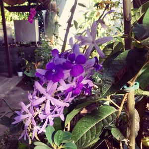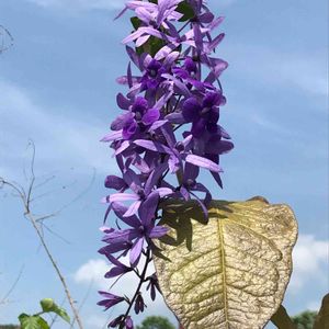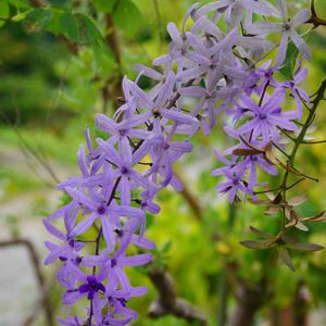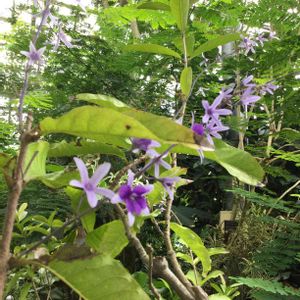 ペトレア・ウォルビリス. つる性でフサのように咲く姿は、英名Queen’s wreasという名がふさわしそうです。