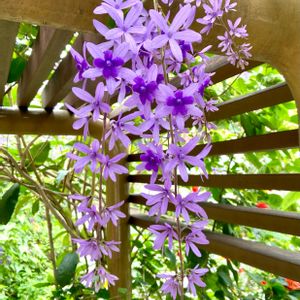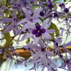 ペトレア ヴォルビリス(紫) 今年も咲いてくれた・:*:・(*˘︶˘*).。*♡・:*:・ 室内で大きくなって、見上げて🤳 今年は、白花のペトレア ヴォルビリス アルビフロラも一緒に咲いてます。 『紫の花輪、女王の花輪、またはサンドペーパーのつるとして一般に知られているペトレア・ヴォルビリスは、熱帯アメリカ原産のクマツヅラ科の常緑開花つる植物』