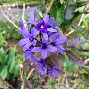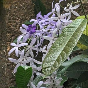 ペトレア ヴォルビリス アルビフロラ(白) 先程、この前に紫花のペトレアヴォルビリスをUPしましが、アルビフロラは、白花です。 紫花と白花を一緒に同じ鉢植えにしてて、咲いてみないとどちらの花なのかわからない状態でしたが、今年は、両方一緒に咲いてます٩(*´︶`*)۶