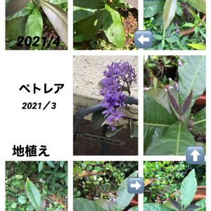 マンゴーの樹の根元に植えたペトレア ウォルビリスが花を咲かせてくれました。 あと20㎝南にズレると、陽当たりがとても良いのですが、諸般の事情により、そうしてあげられません。 それでもこうして綺麗に咲いてくれたので、とても嬉しいです。購入直後に咲いてくれた時よりも花の数が多く、色も濃くなっていました。 桑の木の隣りに植えたものよりかなり遅いですけれど、確実に成長している事が確認できました。 この木の東隣に、もう1本植えてあるのですが、買った時から元気が無く、陽当たりは更に悪いので、殆ど成長していないように見えます。一度鉢に戻し、日差し一杯に当ててもう少し大きくしてから植え直すかどうか、迷っています。