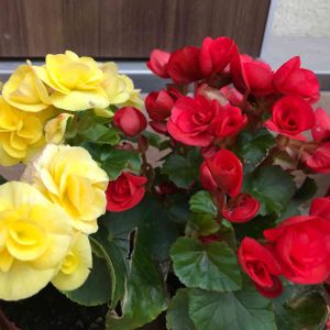 初めてお花を買いました💐 リーガーベゴニアです! 黄色とオレンジでグラデーションになっていて華やかなのが気に入りました🥰