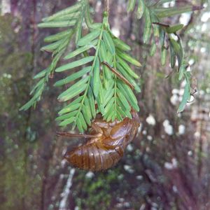 今年の夏は、猛暑と長雨で セミさんも 大変でしたね😥 こどもの森公園の「メタセコイア」 (和名:アケボノスギ)とセミの脱け殻😄