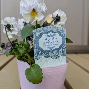 パンジー1つ買う予定だったのに、買った時に100円の割引券くれたから価格の安いやつをもう1つ買って、子連れだったのでおまけにもう1つ名無しのパンジーもらったヽ(^o^)丿 合計3つのパンジーです✨