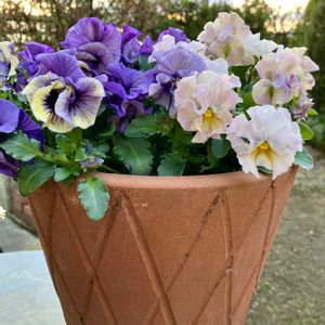 寒さと忙しさで庭活が…👉👈 しかしついにやっと試練も一区切り🥳 試験終わった〜✨🙌 花がら摘みが精一杯で液肥も満足にあげてない中、可愛く咲いてくれるお花達🌸ありがとう〜 ①お正月種まきのビオラ達 本葉3〜4枚✨この連休中にポットあげの予定 ②モルゲンロート ずっとお休みしていたお花が可愛く復活してきました💕寄せ植えの他の子達は調子が良くないので、解体して単独予定 ③ラピスラズリ 花壇地植えの雪や寒さもへっちゃらに逞しい ④ゲブラナガトヨ マリア いつの間にか、お花がモリモリ 2色絶妙なカラー🩵 ⑤ときめきビオラ フルフリル 最後にやめようかと迷ってお迎えした渋子が1番元気🤣 姿勢良くシャキーン✨