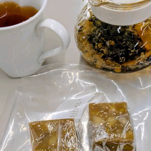 ハーブ教室でカモミール🌿の紅茶を頂きました( ^^) _旦~~☕ 先生の🏠の自家製の栗🌰で作った羊羹を頂きました(๑´ڡ`๑)