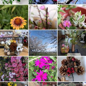 Googleフォトが「自然のブーケ💐」と題してコラージュしてくれました🍀😊✨2019年〜2025年🌸フラリエ、豊明花き市場、愛知県春日井市、豊田市、花遊庭、お友達の🏠~♬♬Good memory☆(*˘︶˘*).。.:*♡