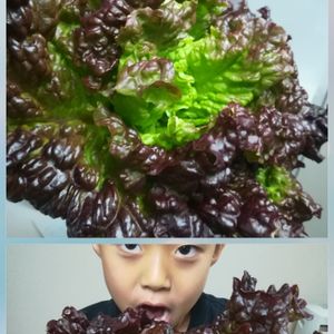 グレートレークレタスを収穫。 ダイソーで買った種から。(^_^) 無農薬につきナメクジがサンドウィッチされてて気になるけど、美味しくいただきます。