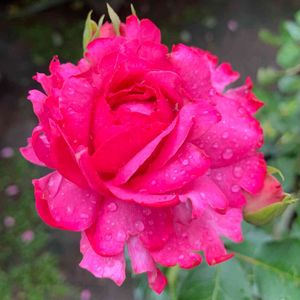 🌹ザ・マッカートニーローズ ♡🎼*.:🎸 大雨☔️が膨らんだ蕾に染み込んだので形がいまいちですが、無事咲いてくれました😊