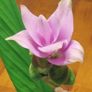 私の一人一花運動🌸 部屋の中は観葉植物ばかり🌿 花瓶には他のお花も入っていたけど 今はこのお花だけになりました クルクマはすごく長持ちしますね 種類もいっぱいあります お店にあったクルクマのチラシを もらってくればよかったな