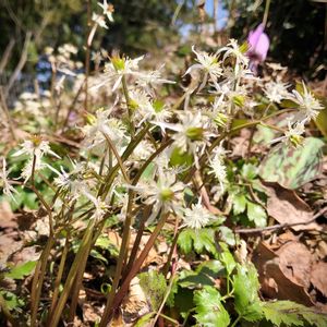 スプリングエフェメラル セリバオウレン 高尾ハートルートでセブンサミッツ踏破した後に見つけました 2024.2.17野草園にて撮影