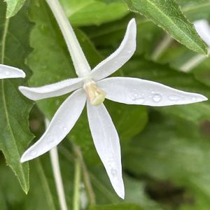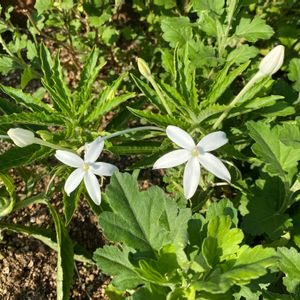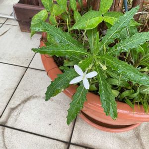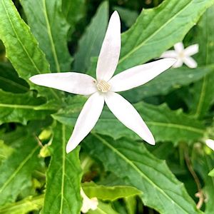 シャープな星型の白い花・「星薊(ホシアザミ)」で、おはようございます🌟 'ホシアザミ"は、西インド諸島原産のキキョウ科の多年草🏝️ 花名に「アザミ」とつくように、細長い葉には薊に似たギザギザした鋭い鋸歯があります🪚 清楚な印象とは裏腹に、「有毒植物」の分類がされており、茎や葉を折って出る白い乳液が皮膚につくと炎症を起こしたり、目に入ると失明の恐れもあるようですので、鑑賞に留めて、不用意に触れないことが賢明ですね😱⚠️☠️ ー別名は、「イソトマ」。 ー花言葉は、「嬉しい知らせ」、「心を開く」…他。