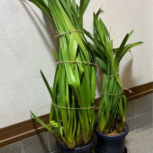 母から譲り受けた、シンビジュウム。 明日から寒くなるらしいので… 玄関へ取り込みました。 狭いので、葉まとめました。 結構しっかりした葉なので、手を傷付けないように注意⚠️です。 春になったら、株分けと植替えしたいです💪 蘭は、🔰なので、色々調べながら悪戦苦闘中です😆