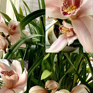 🍀🌻🪴💐🌹🌻🍀 🍀♥シンビジウム(シンビジューム)♥🍀 💐ビジュウム全体の花言葉は(華やかな 恋)、(高貴な美人)、(誠実な愛情)、(飾ら ない心)、(素朴)です 💐シンビジウムはラン科シンビジウム科に 属する常緑植物です 💐ほかの木に着生したり、根元に地生した りしながら分布する特徴があります 💐開花時期は12~2月と寒さの厳しい時期 で、鑑賞期間が長いことが特徴です 🍀🏵️🌼🌸🌼🌺🍀