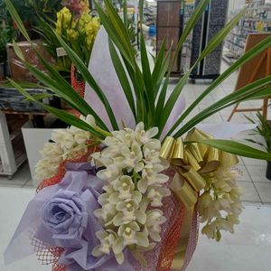 大人気のシンビジュウム アイスキャスケード。 花芽が下にあるので ラッピング苦戦した😅 これからお歳暮シーズン。 忙しくなる。 またラッピングしよう☺️