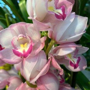 昨日に引き続き、シンビジュウム🌸 シーサイドスター‘ピュアメモリー’ Cymbidium Seaside Star 'Pure Memory' 後ろにぼんやり映ってた方のシンビジュウムです☻︎ 淡い色でほんわか☺️💞 昔、母が親戚の何かお祝いで贈られてくるシンビジュウムや胡蝶蘭をその家の人はお花を育てるのが好きじゃなかったみたいでもらってと言われた二鉢から株分けして10鉢くらい増やしてました🎶 10年くらい咲いてくれてたけどダメになって 今回母の快気祝いも兼ねて2鉢プレゼント🎁 シンビジュウムは案外育てやすいですよね と言っても私はノータッチですが😅 華やかでほのぼの癒されます🌸💖 今、行きつけのフラワーショップでシンビジュウムフェア開催されてるようでインスタで紹介されてるのは数万するんじゃないかってくらい、蘭展に出品できそうなくらいの花付きのよいシンビジュウム😆 お手頃価格でお迎えできそうな小振りのあるかなー❓