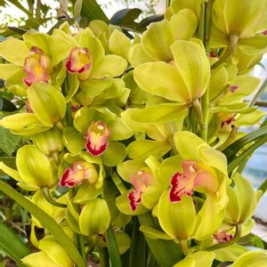 シンビジュウム 駅の植栽です♫お正月に相応しい華やかさですね🥰 この時期は室内で華麗に咲いてるイメージなので💠大丈夫かなと少し心配です😅
