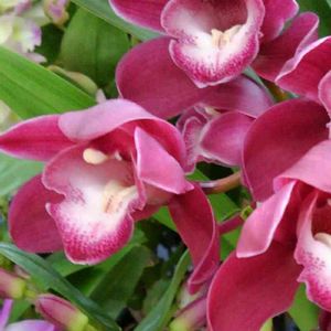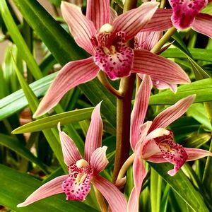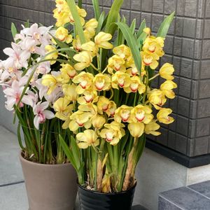 シンビジュウム(学名: Cymbidium 英名: Cymbidium)の花🌸🌿🌺 シンビジウムは、東南アジアから日本にかけて自生する原種を交雑育種してできてきた洋ランです。 花はバルブの基部から出る茎について、単独か総状に多数の花をさかせます。 とっても美しい洋ランをお楽しみください。🌸🌿🌺