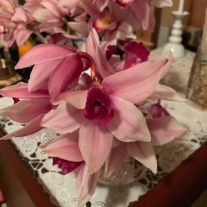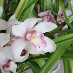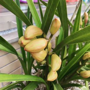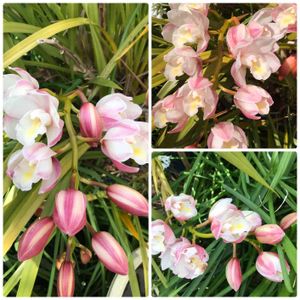 シンビジュウム ラン科 原産地 東南アジア 耐寒性があり、育てやすく淡い色の花をたくさんつけて楽しませてくれます。🌸🌼🍀 古い品種で詳しい名前はわかりません。😊