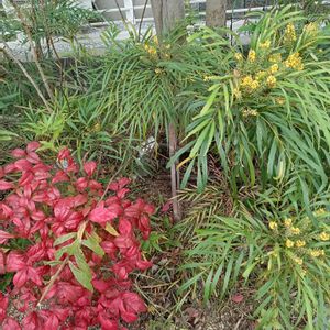 紅く紅葉したオタフクナンテン、黄色の小さなお花が可愛らしいホソバヒイラギナンテン…素敵なお庭です✨️💛🍂🍁