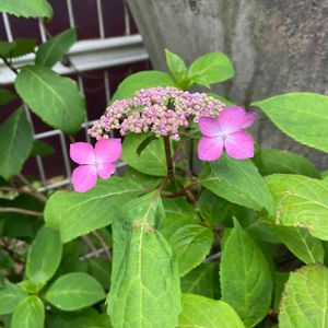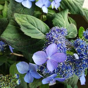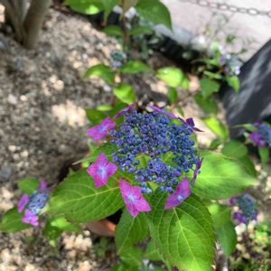 今年の紫陽花、第一号。 会社で咲いた『黒姫』と言う名前の山紫陽花。 15年くらい前に愛知県稲沢市の紫陽花寺に紫陽花を見に行った時に出店で買った株です。