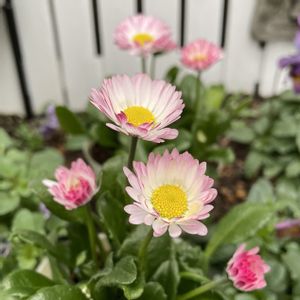 🌻イングリッシュデージー ロリポップ 花びらの表側は淡いピンク 裏側は濃いピンクです。💗 ここ3日間 ☔雨がよく降りましたが そんなことお構い無しで 元気いっぱいです。🙋⚡ 12/14に投稿した寄せ植えの中のお花 ですが 一緒に寄せた☘️クローバーは 先日の寒波のダメージで 今もまだ 死に体です…。 😱💦
