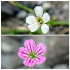 おはようございます♪ 砂利を固めた間から出ているヌカイトナデシコ🌸(だと思います) 何度も車に引かれているはずなのにめげずに可愛く咲いています💮 別名:ヌカイトカスミソウ、ワイセイカスミソウ
